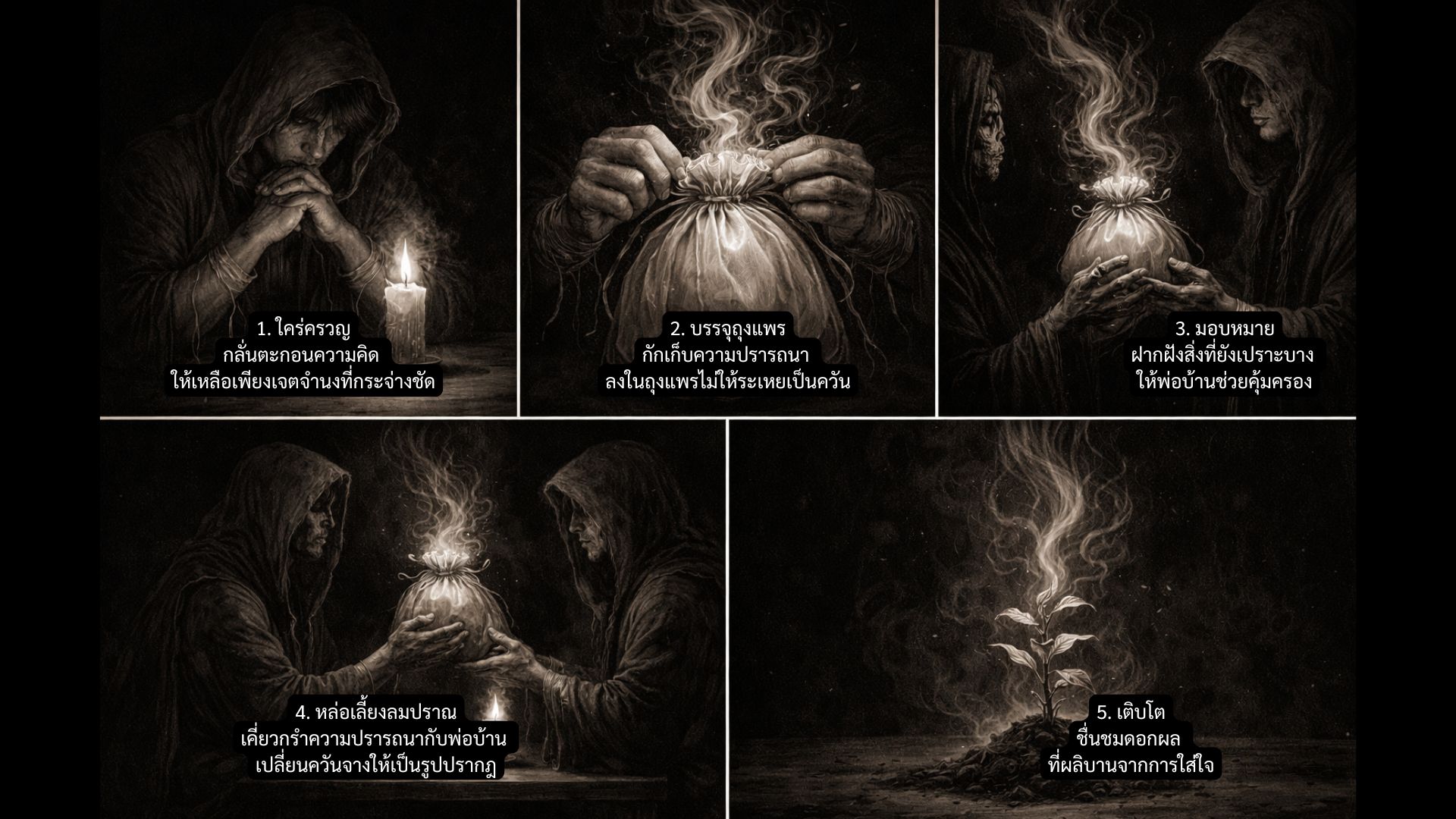 อย่าปล่อยให้ความตั้งใจล่องลอยอยู่ในอากาศ จงคว้ามันมาใส่ลงใน “ถุงแพร” เขียนระบุให้ชัดเจน เพื่อเปลี่ยน “ความคิดที่เลื่อนลอย” ให้กลายเป็น “พันธสัญญาที่จับต้องได้”